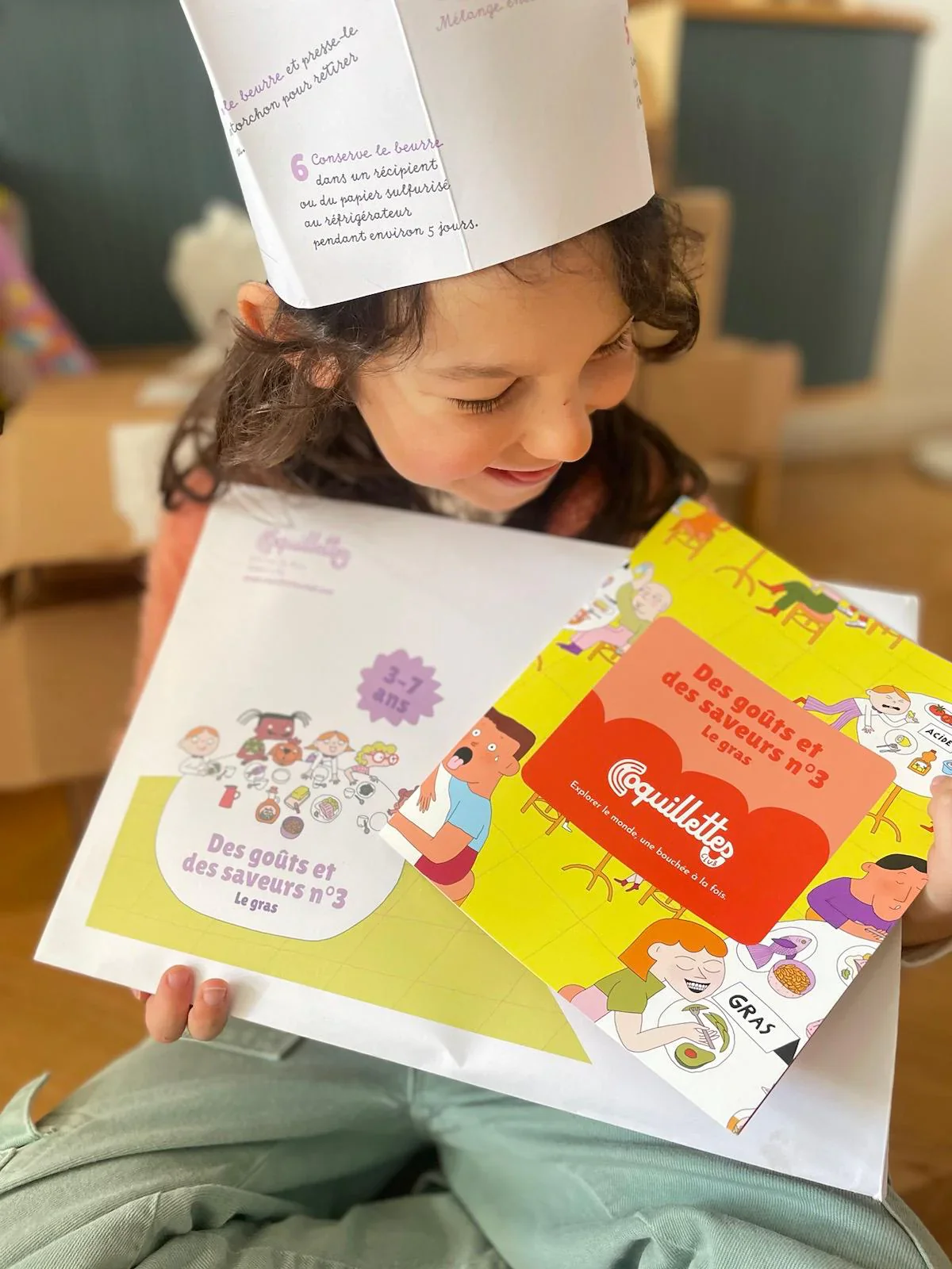 Dans cette 3ᵉ aventure sensorielle, votre enfant part à la rencontre des “gras copains” et “gras moins copains” pour comprendre que toutes les matières grasses ne se valent pas.