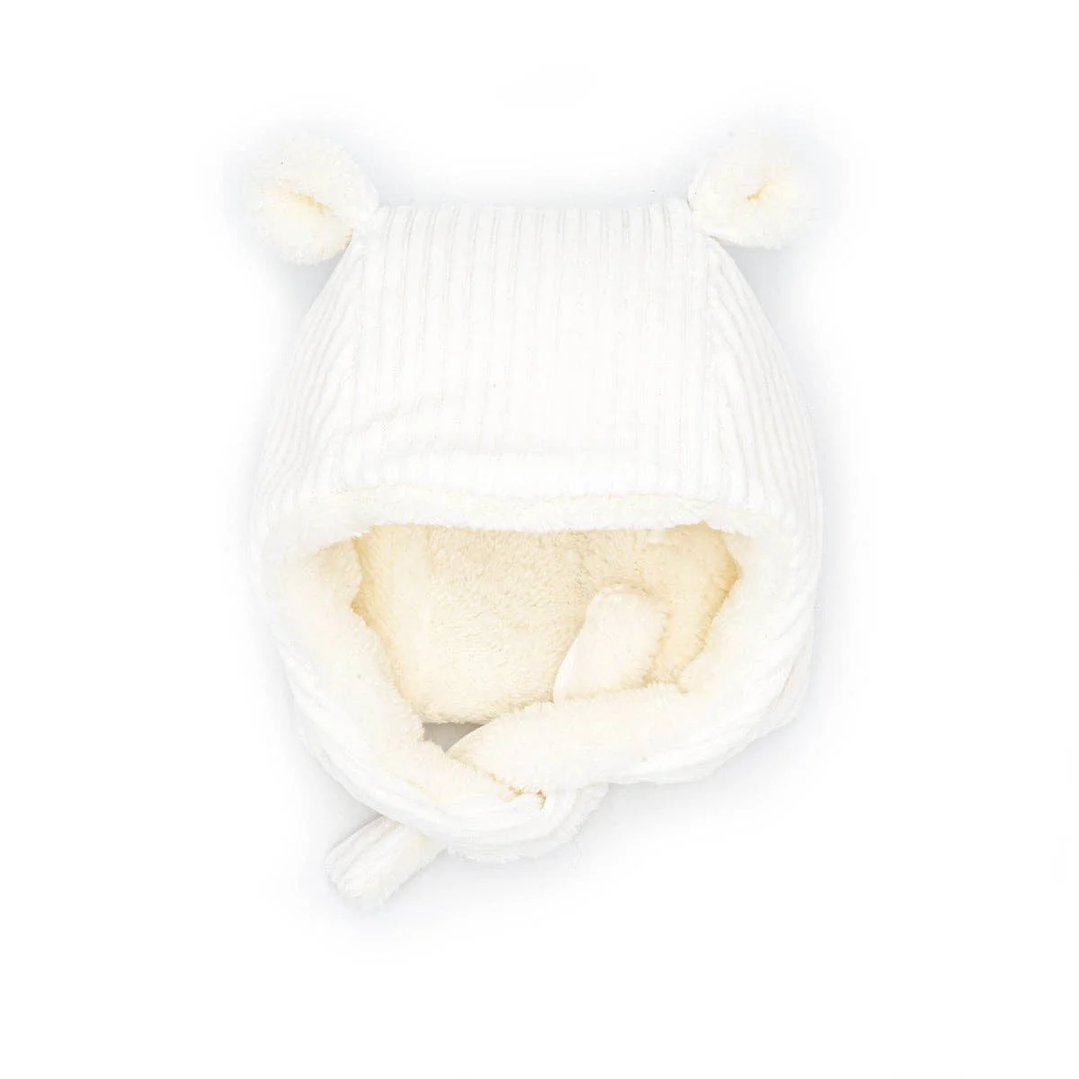 Offrez chaleur, confort et style à votre bébé avec notre bonnet réversible en velours écru, confectionné à la main avec amour dans le nord de la France. Un indispensable pour affronter les journées fraîches avec douceur !