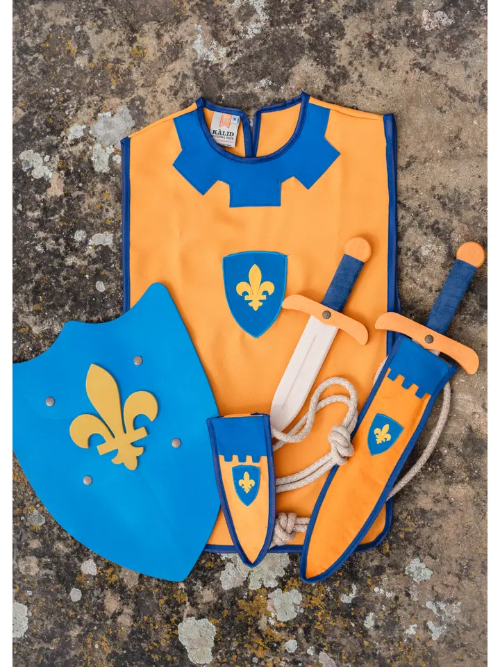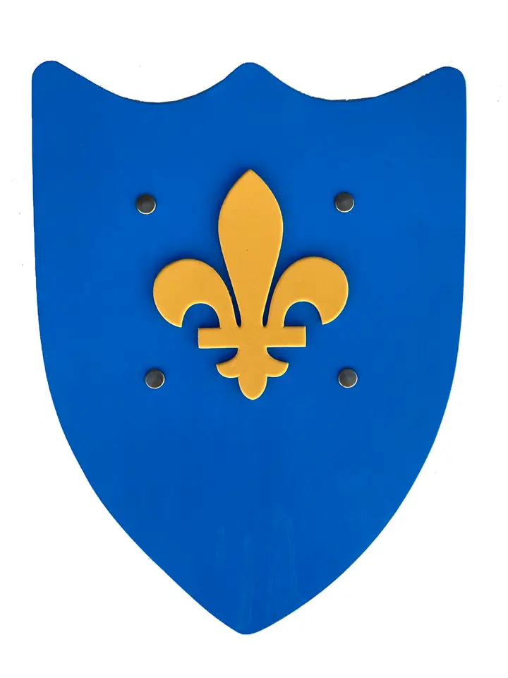 Transformez les aventures de vos enfants avec ce bouclier bleu orné d’une élégante fleur de lys, symbole de noblesse et de grandeur.