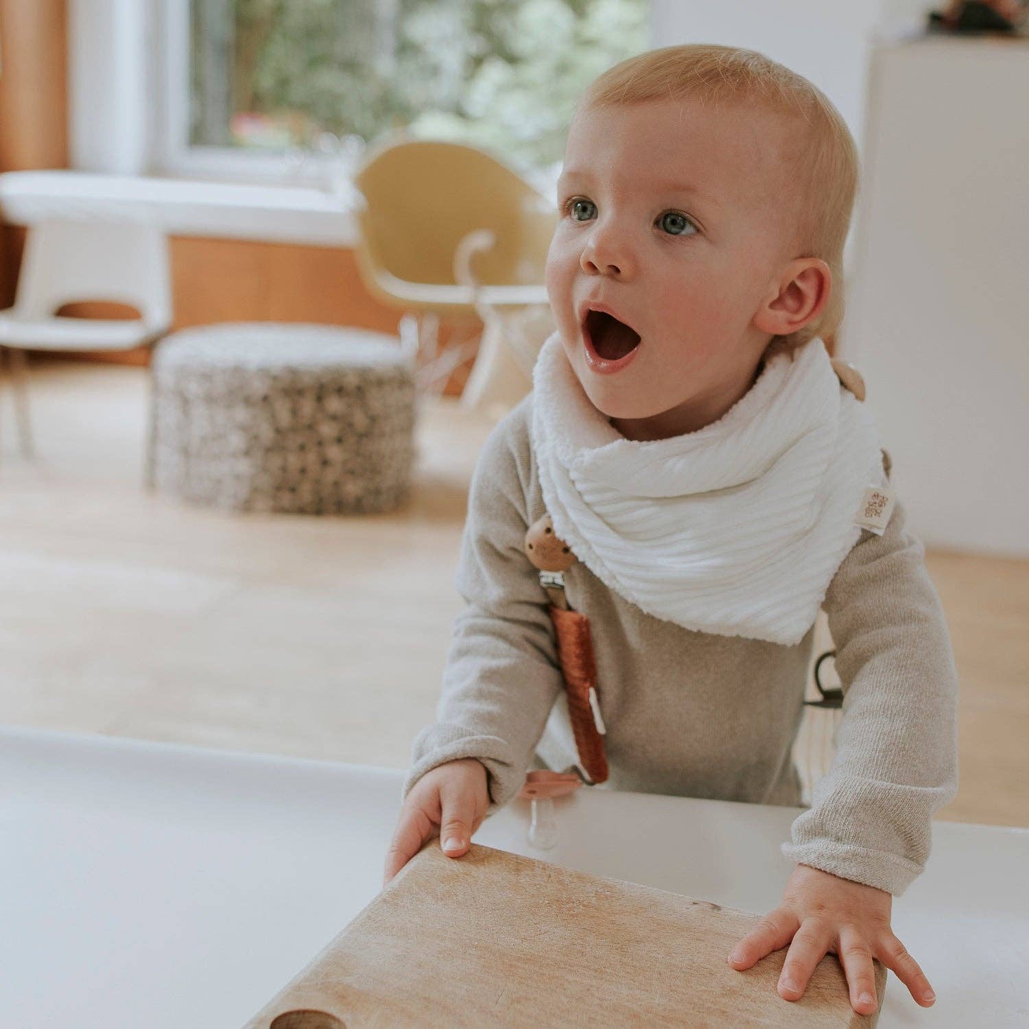 Offrez chaleur, confort et style à votre tout-petit avec notre cache-cou bébé réversible en velours écru.