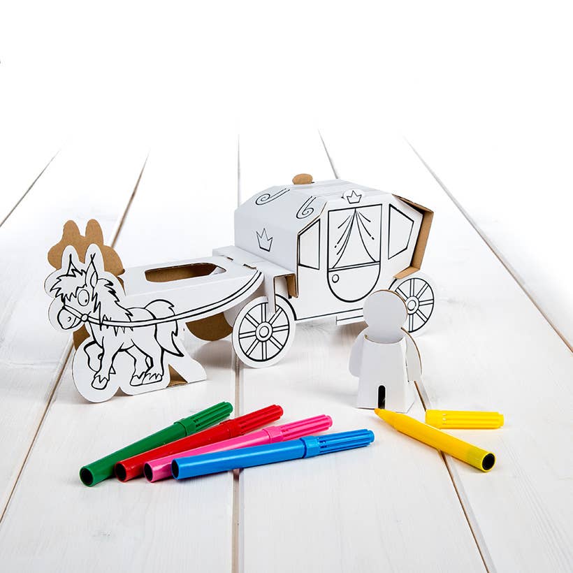 Chariot en carton avec des lignes imprimées pour la coloration. Inclut 6 feutres et une figurine de base CALAFANT *durable, recyclable *Matériau : carton ondulé de haute qualité *Longueur (pouces) : 9,84-11,84• Pays de fabrication : Chine
