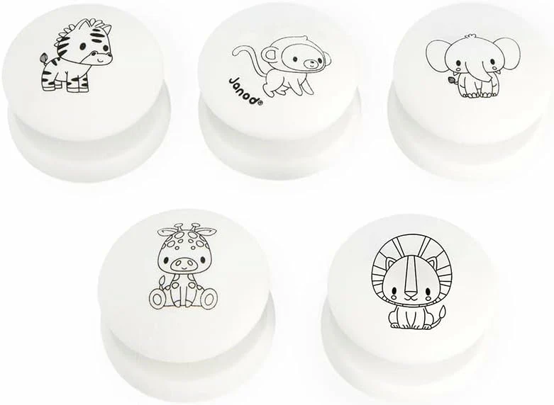 Coffret Stampinoo Savane – 5 Tampons en Mousse et 1 Encrier Pour Petites Mains