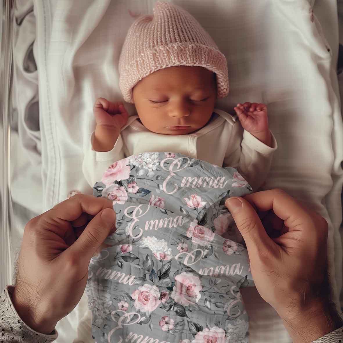 Enveloppez bébé dans cette couverture en mousseline de bambou douce et légère, personnalisée avec son prénom. Fabriquée avec soin, cette couverture avec de jolies roses est parfaite pour les doux moments avec bébé.
