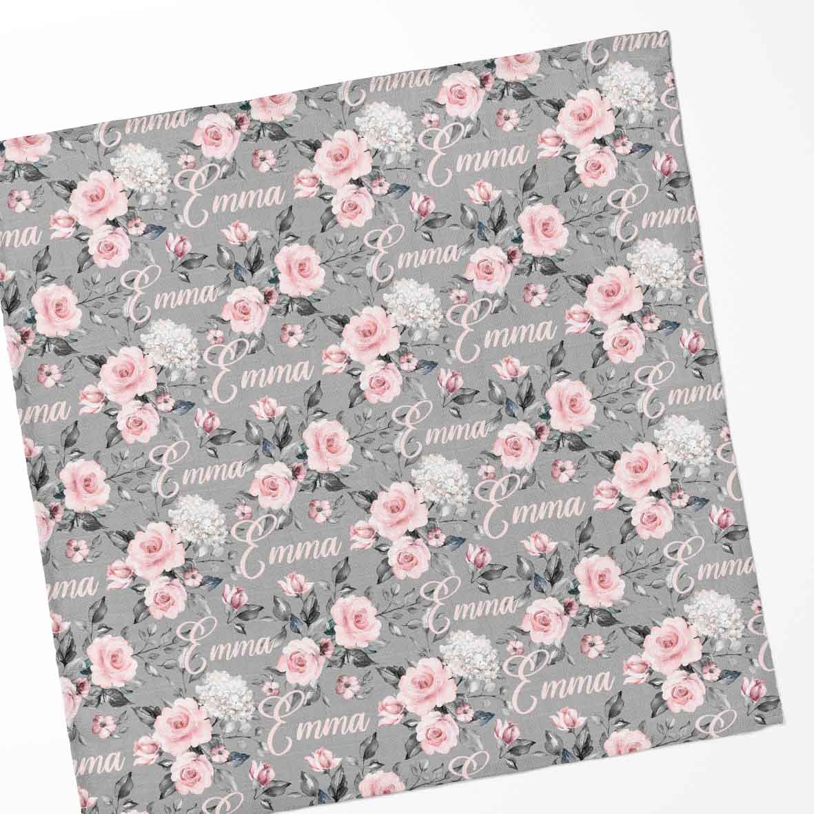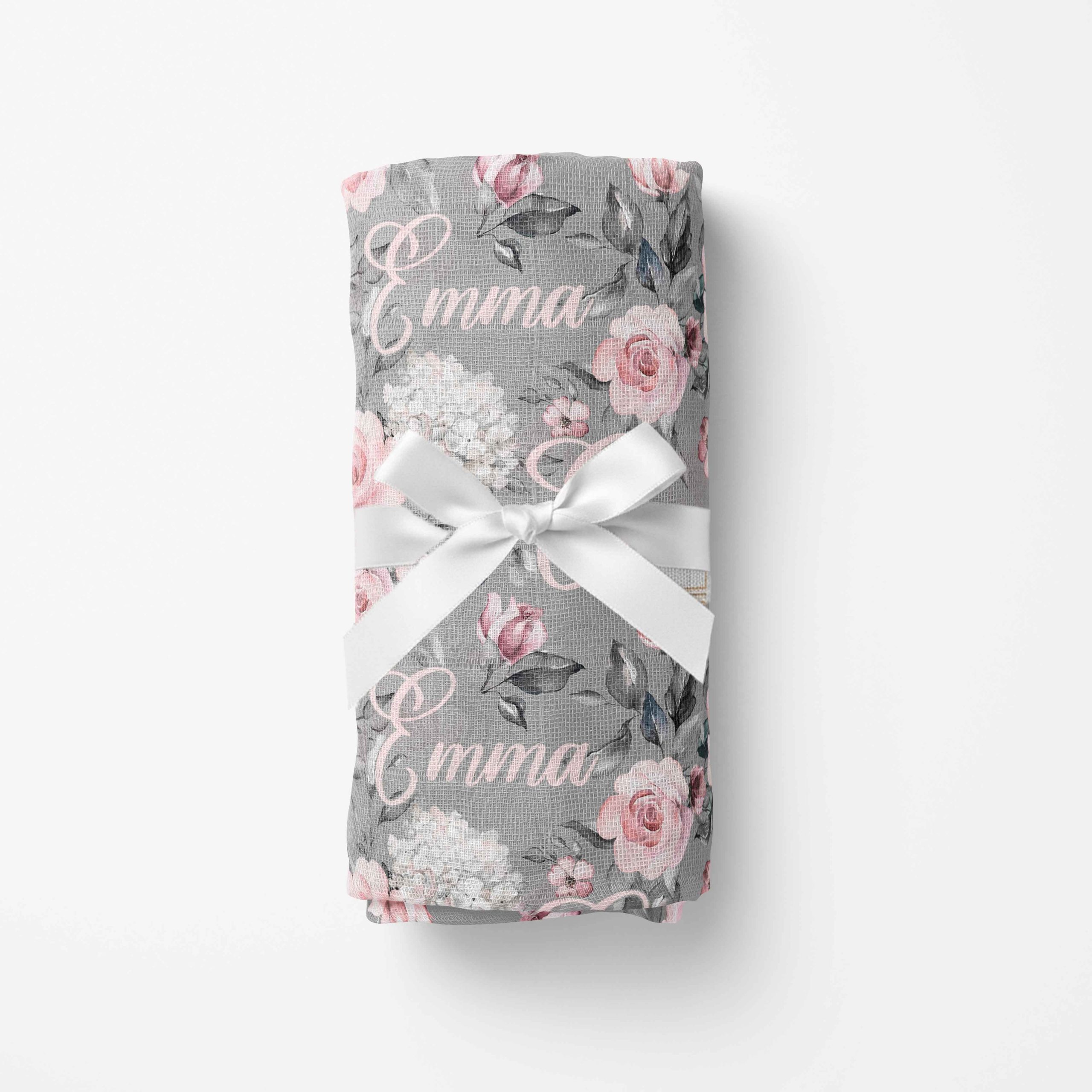 Couverture en mousseline de bambou | Fleurs Grises prénom répétitif