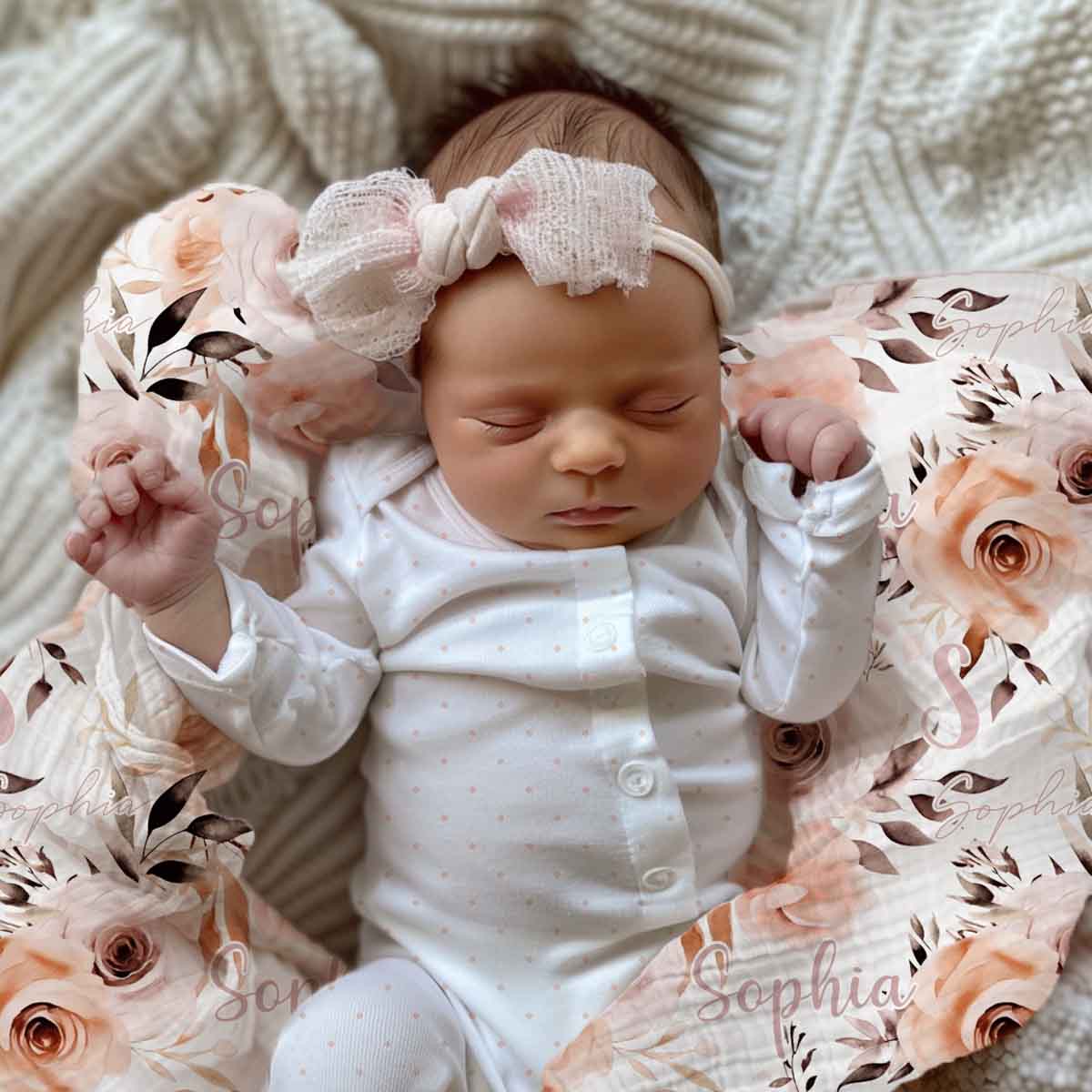 Enveloppez bébé dans cette couverture en mousseline de bambou douce et légère, personnalisée avec son prénom. Fabriquée avec soin, cette couverture avec de jolies roses automnales est parfaite pour les doux moments avec bébé.