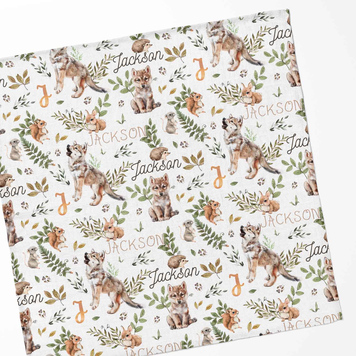 Couverture en mousseline de bambou | Loup de la forêt enchantée blanc prénom répétitif