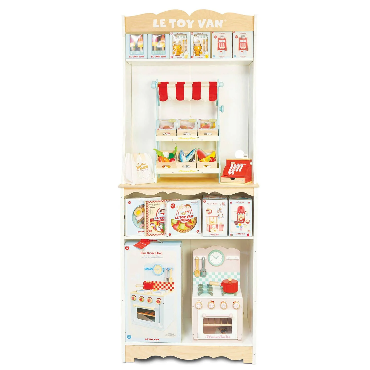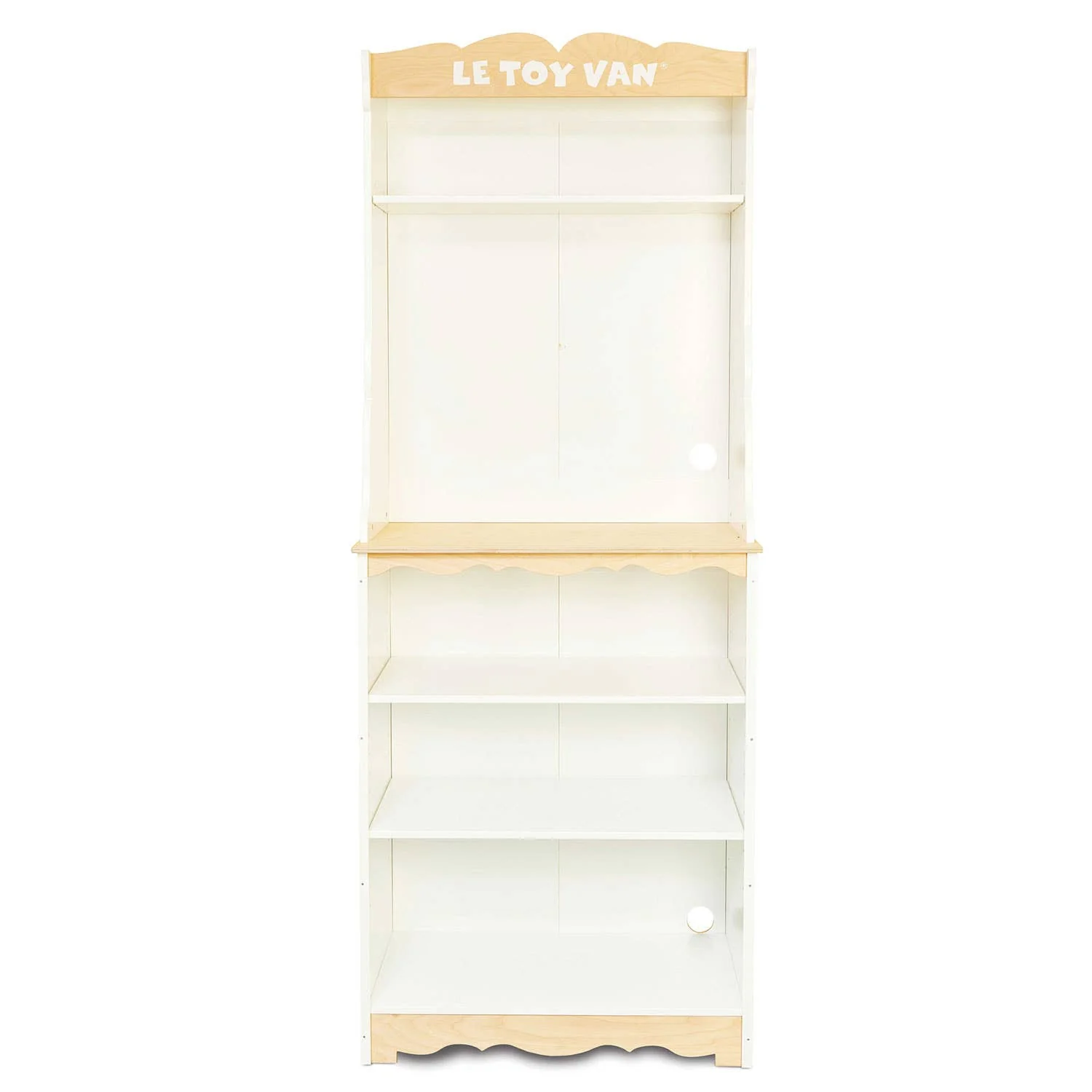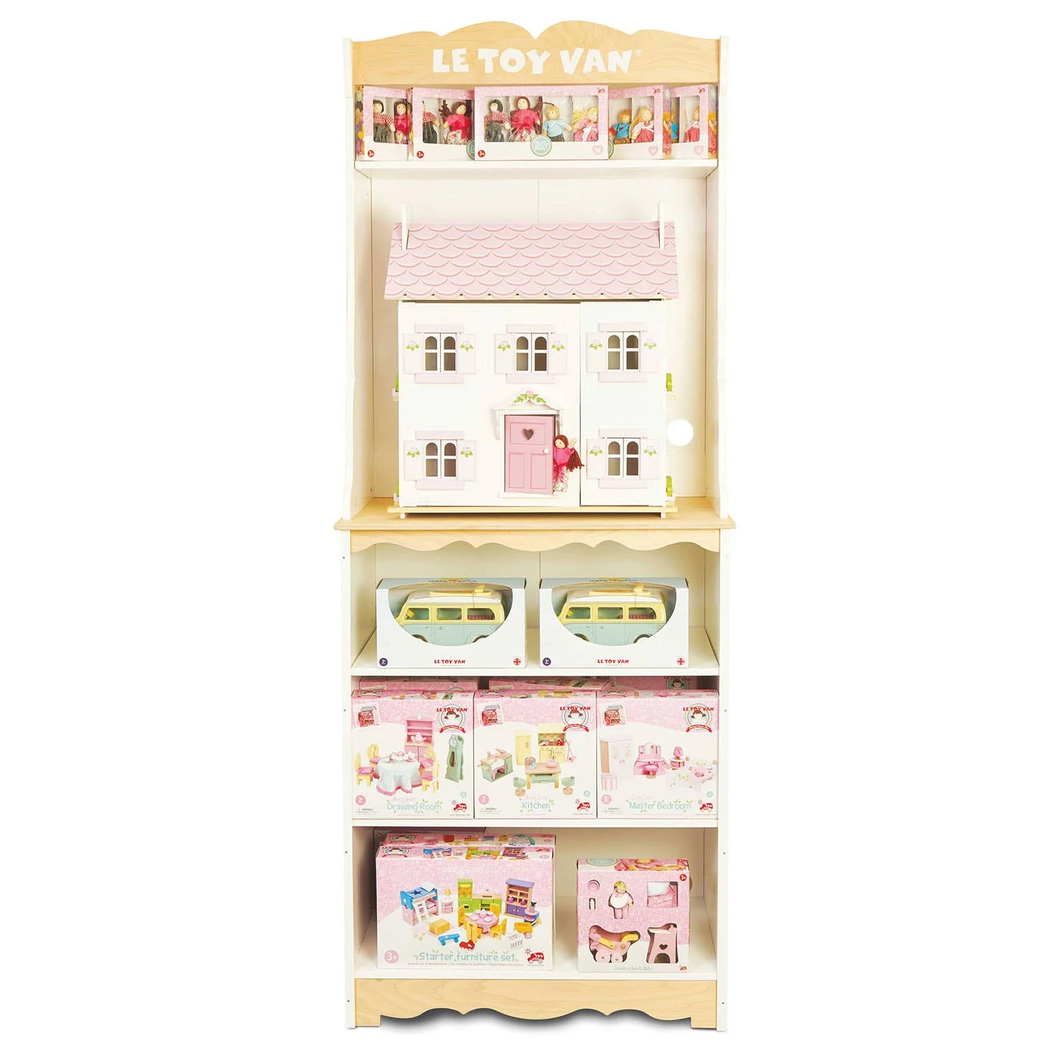 Une grande commode robuste avec des étagères réglables. Idéal pour exposer la plupart des jouets Le Toy, y compris le H150 Cherry Tree Hall et les emballages. L’arrière comporte un trou pour un câble d’éclairage LED.