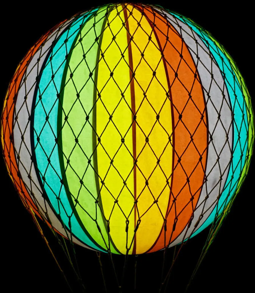 La Grande montgolfière bleu ciel LED est une sphère en résine enveloppée de papier du Japon aux teintes multicolores, suspendue par un fil de nylon fourni, avec un panier en matière recyclée. Un câble noir relie le ballon au panier, où se loge une boîte à piles. Elle s’allume facilement grâce à la télécommande incluse. […]