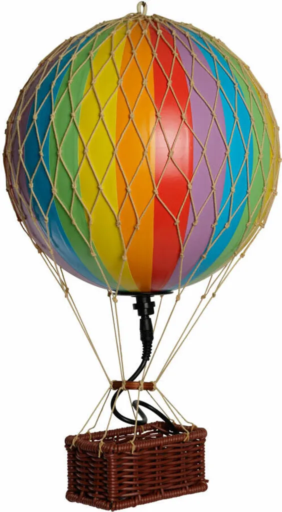 La Grande montgolfière bleu ciel LED est une sphère en résine enveloppée de papier du Japon aux teintes multicolores, suspendue par un fil de nylon fourni, avec un panier en matière recyclée. Un câble noir relie le ballon au panier, où se loge une boîte à piles. Elle s’allume facilement grâce à la télécommande incluse. Ses dimensions généreuses de 56 cm de hauteur et 32 cm de diamètre en font un élément décoratif unique à accrocher au plafond.