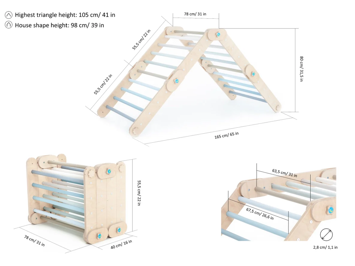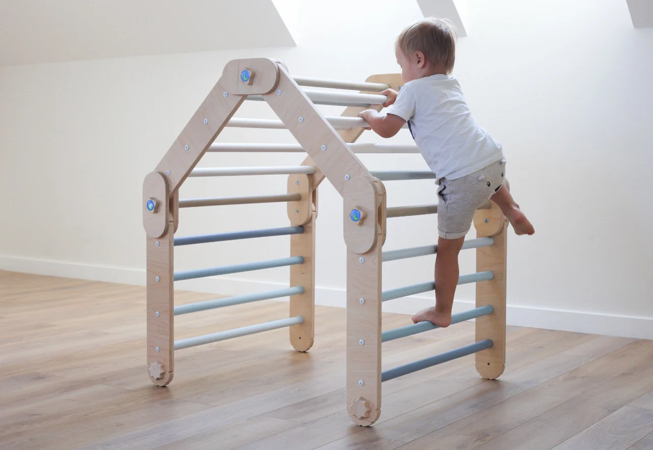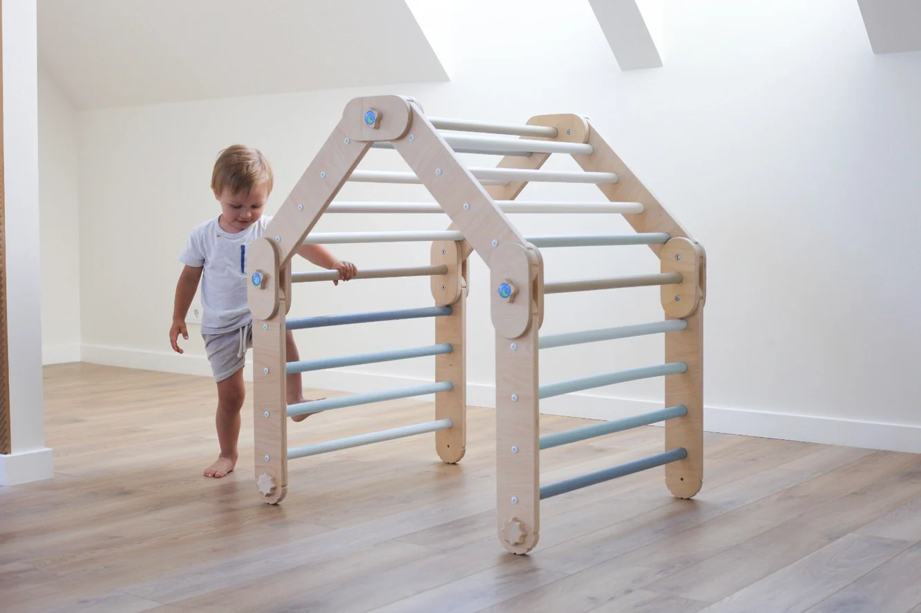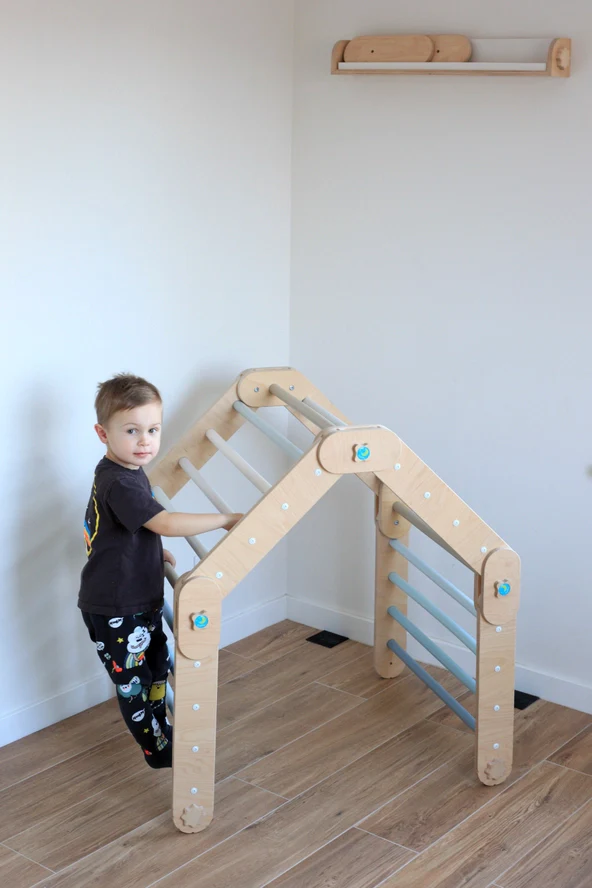 Grimpeur Transformable Bleu, Triangle Pikler Modifiable – Jeu de Motricité Enfant – Happymoon