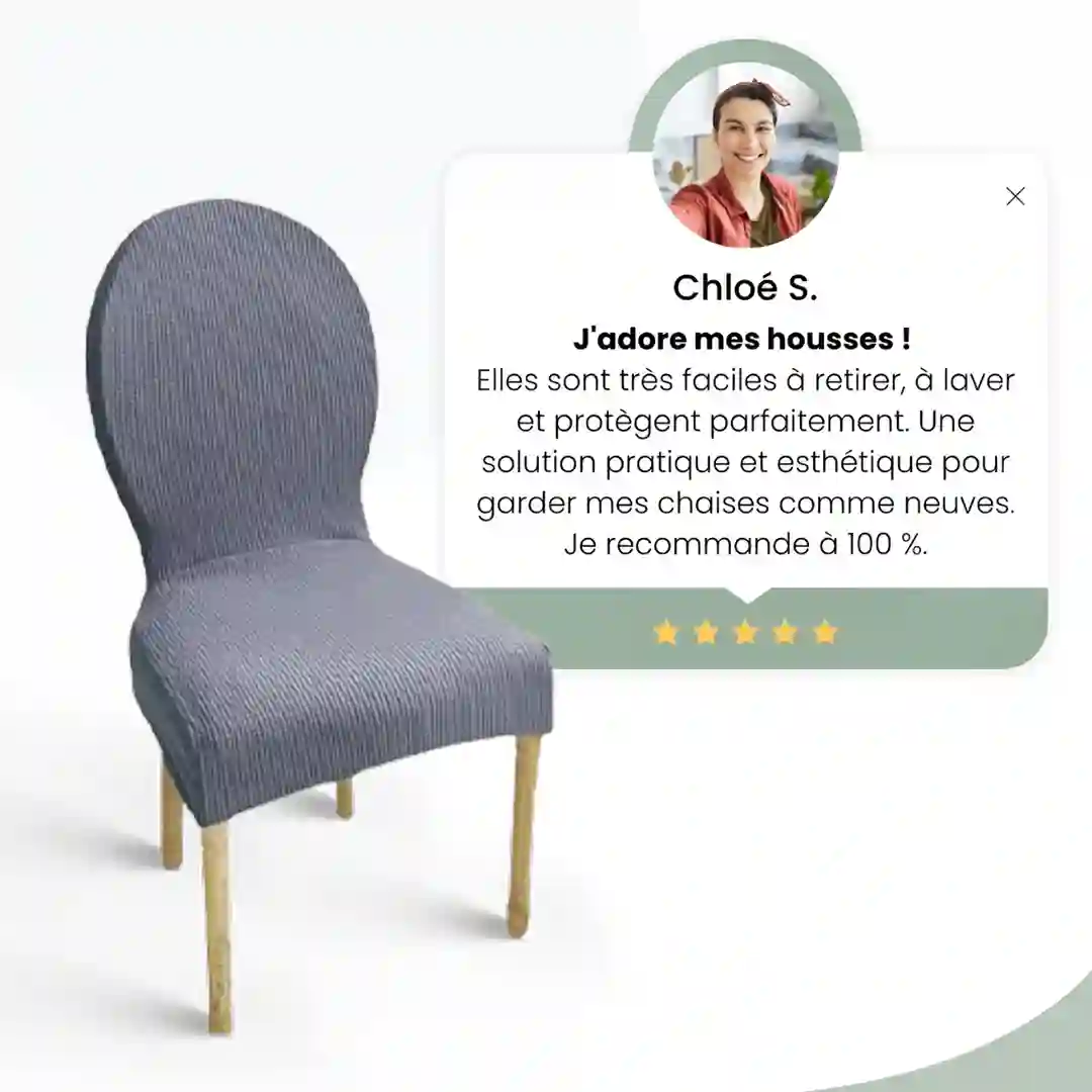 - Protection renforcée : Nos housses en tissu haute densité protègent vos chaises des taches, éclaboussures et usures quotidiennes.