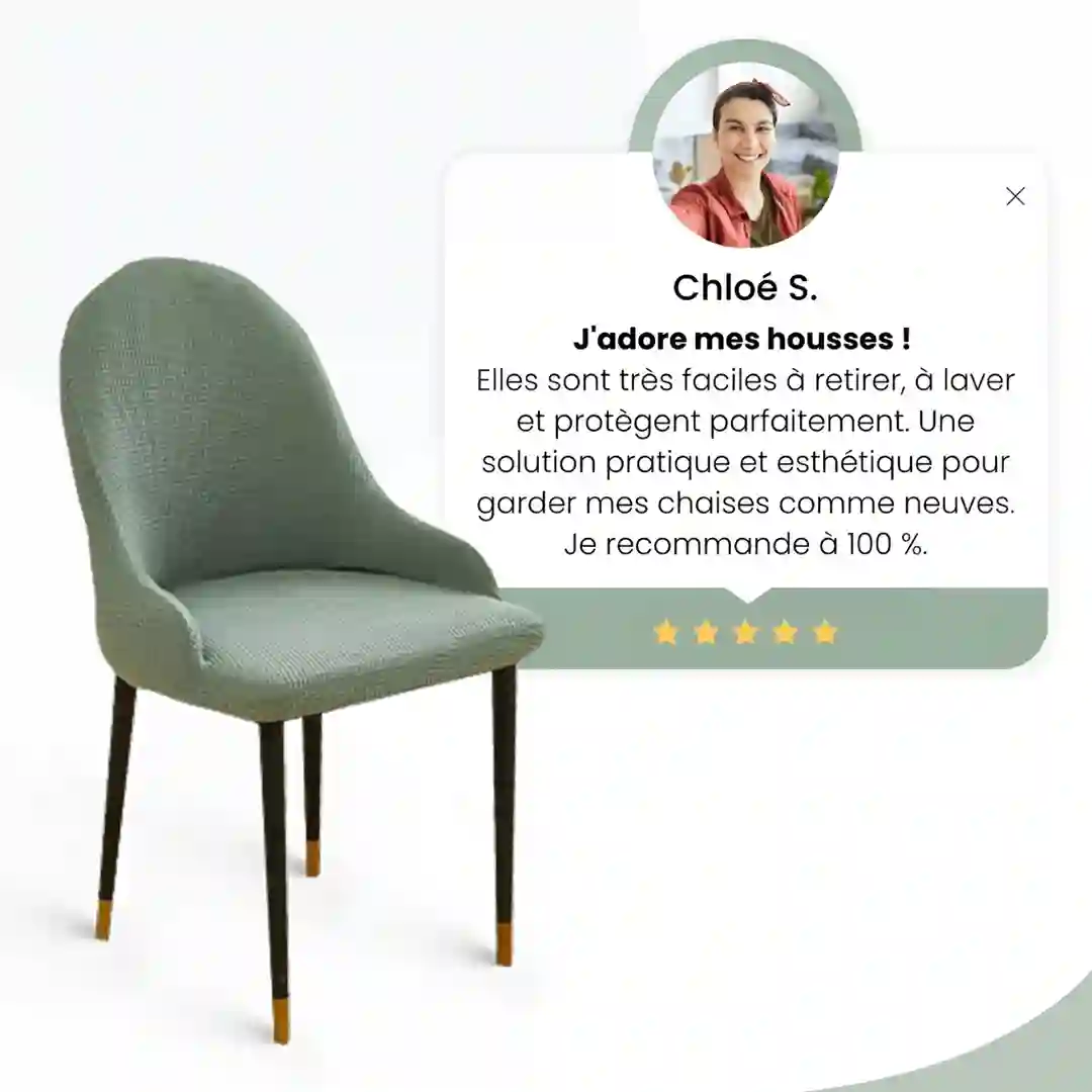 Fabriquées à partir de matériaux élastiques de haute qualité, nos housses assurent un ajustement parfait, épousant les formes de vos chaises pour une tenue impeccable dans le temps. Elles sont idéales pour protéger vos meubles contre les taches, les éraflures et l’usure quotidienne, tout en rehaussant leur apparence.