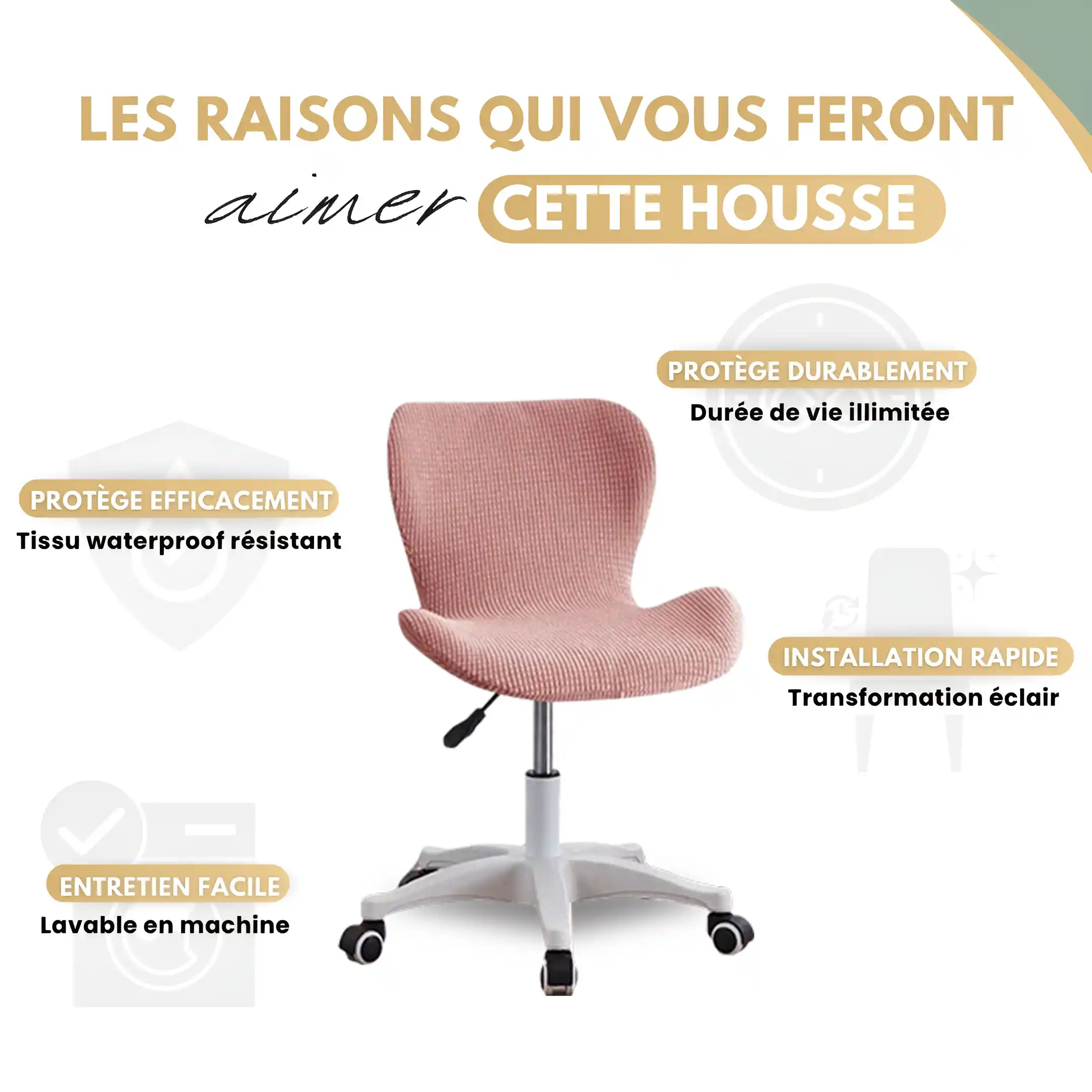 - Protection supérieure avec un tissu premium : Protégez votre chaise des rayures, des taches et de l’usure grâce à notre velours résistant et durable.