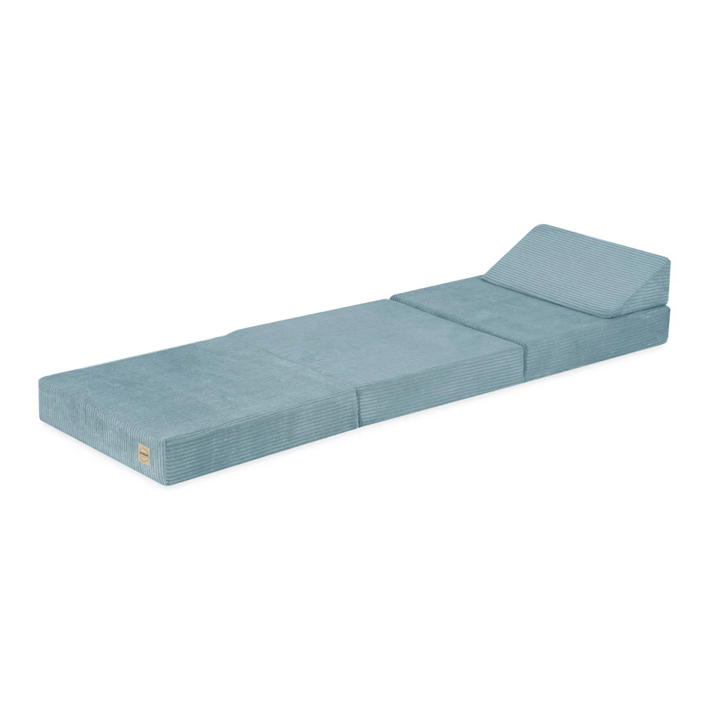 Matelas Foldie large avec appui-tête – Velours côtelé bleu premium – Plush Nest
