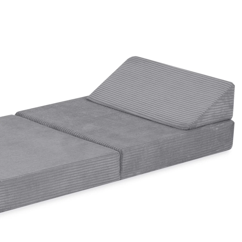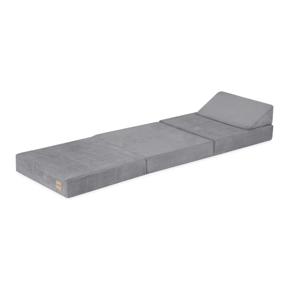 Matelas Foldie large avec appui-tête – Velours côtelé gris premium – Plush Nest