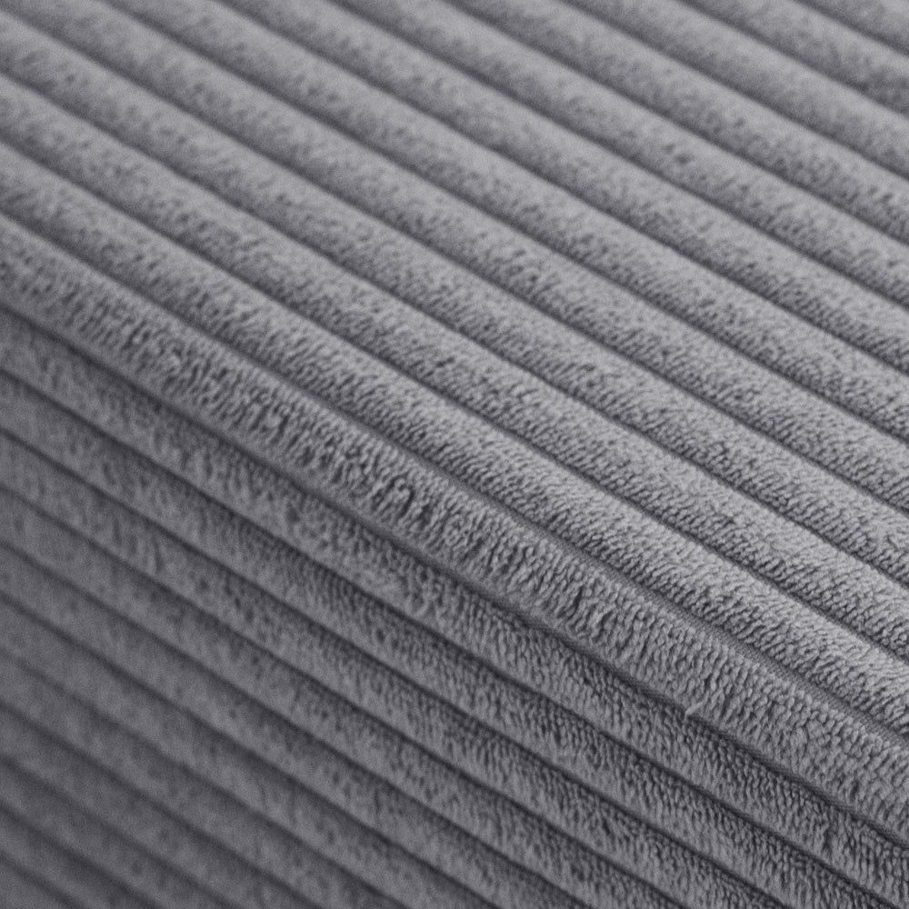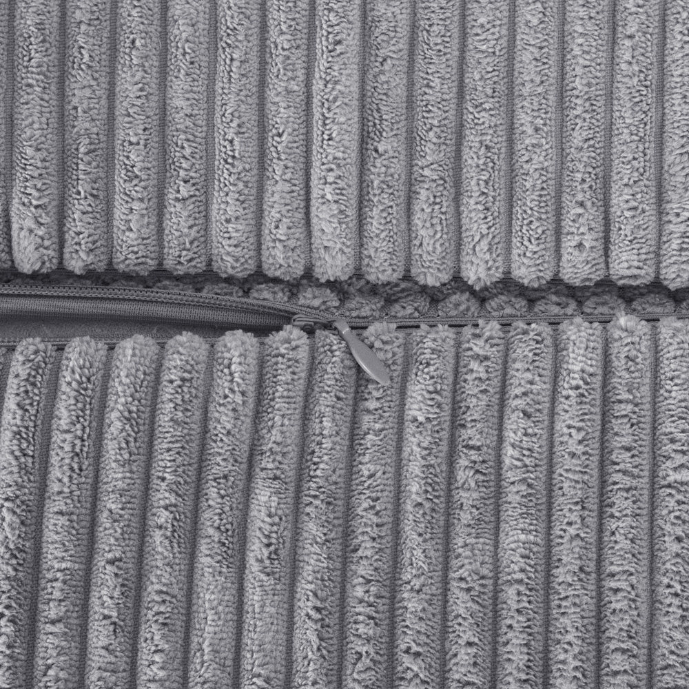 La housse en velours côtelé gris est amovible et lavable en machine. Le polyester résiste bien aux taches et à un usage intensif.