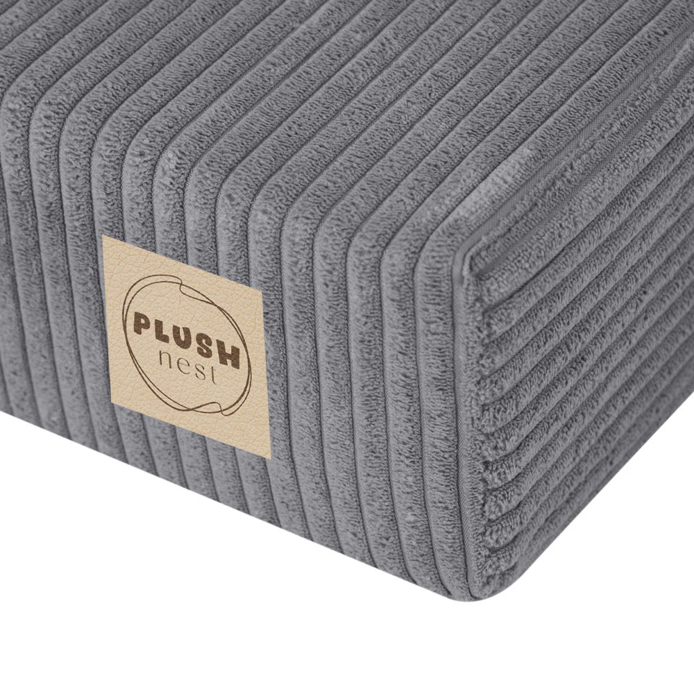 Le matelas Foldie avec appui-tête pour enfants de la marque Plush Nest est conçu pour offrir un espace confortable et sécuritaire aux tout-petits dès 12 mois. Fabriqué en mousse polyuréthane de haute qualité avec un revêtement en velours côtelé gris premium (100 % polyester), ce matelas associe confort et design pour la chambre de votre enfant. Il offre un soutien optimal pour les moments de jeu, de repos et les siestes, tout en s’intégrant parfaitement dans la décoration grâce à son esthétique raffinée et son style moderne.