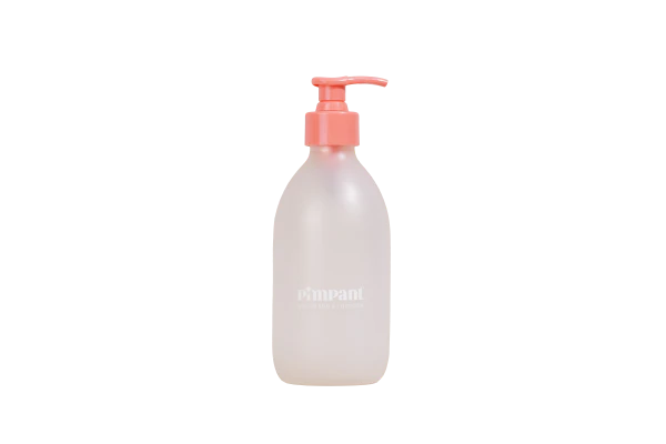 Pimpant — Bouteille en verre rechargeable pour gel douche (pompe rose kids) – 250 mL