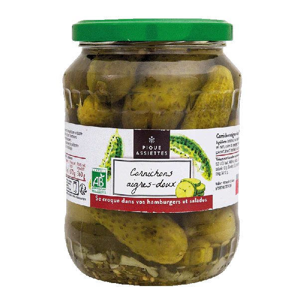 Pique Assiettes — Cornichons aigres-doux bio – 850 g