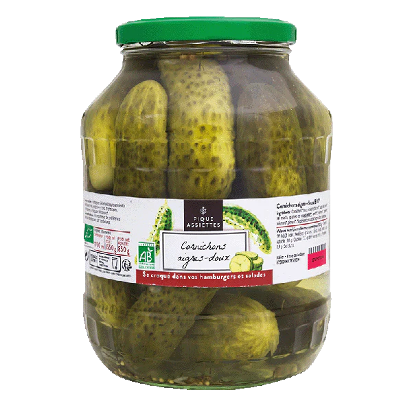 Pique Assiettes — Cornichons aigres-doux bio – 850 g