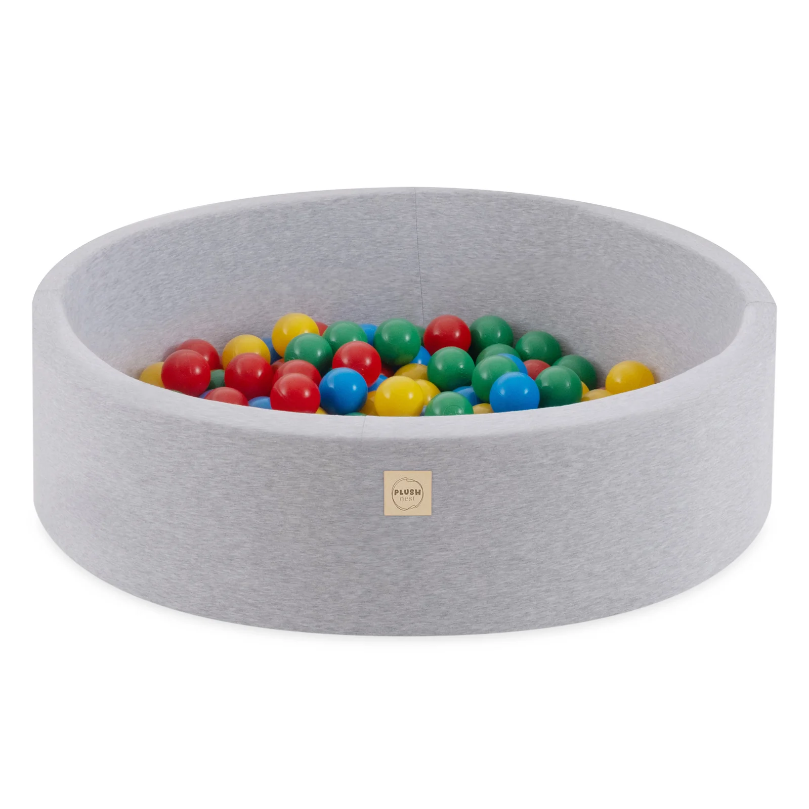Piscine à balles – ronde 90×30 cm, gris clair, coton (+ 200 boules bleu, jaune, rouge, vert) -Plush Nest- Misioo