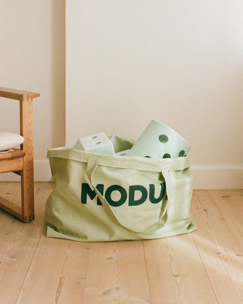 Un grand sac en toile pour toute votre collection MODU. Utilisez-le pour ranger des blocs qui ne sont pas utilisés en jeu ou pour apporter vos jouets MODU au chalet d’été.