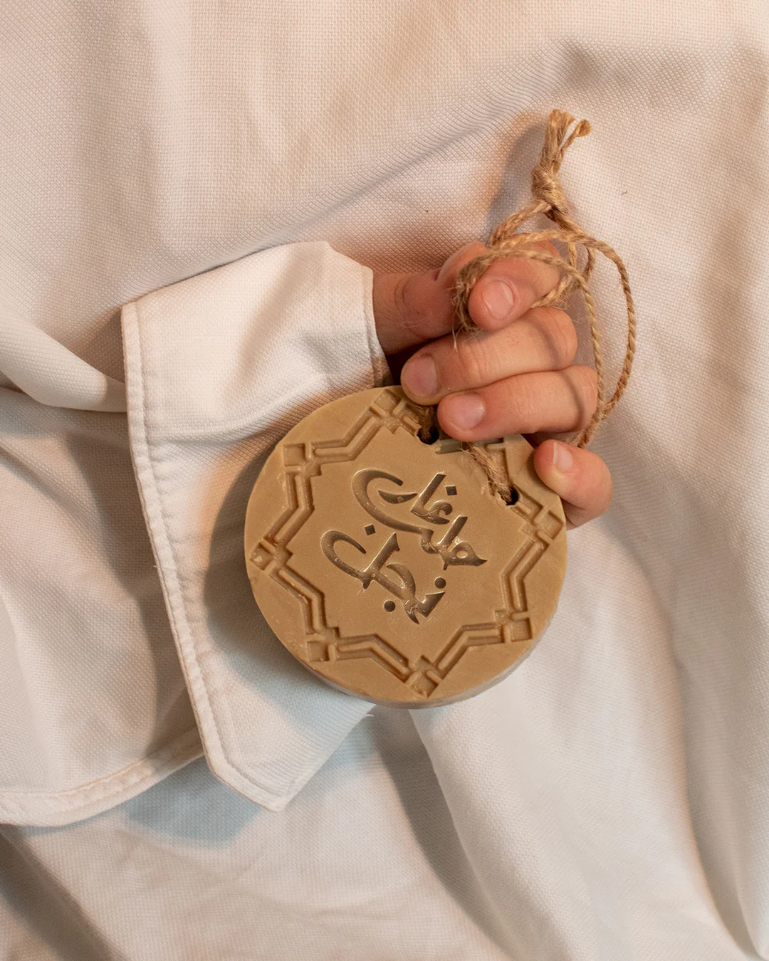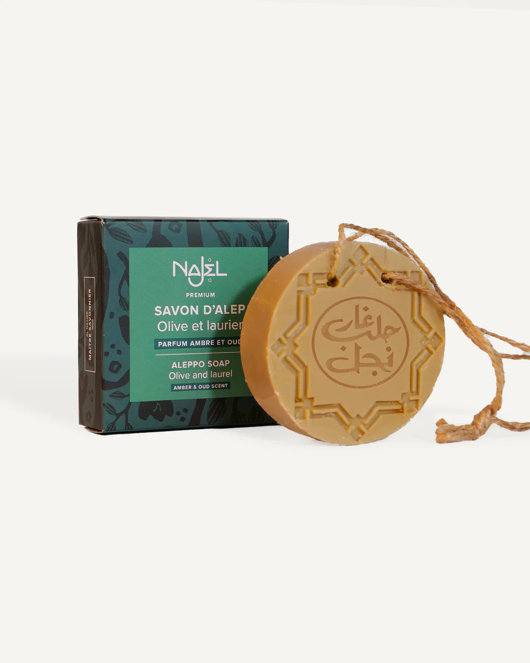 Élaboré à partir d’ingrédients soigneusement sélectionnés, le savon d’Alep parfumé à l’Ambre et Oud associe l’huile d’olive à l’huile de baie de laurier saponifiées, réputées pour leurs vertus nettoyantes. Fabriqué dans notre savonnerie familiale en Syrie selon un savoir-faire artisanal ancestral, ce savon se distingue par son ornement décoratif et sa forme ronde, agrémenté d’un cordon pratique. Il fait partie de nos savons premium en étui, offrant un véritable rituel de beauté qui conjugue tradition et bien-être.