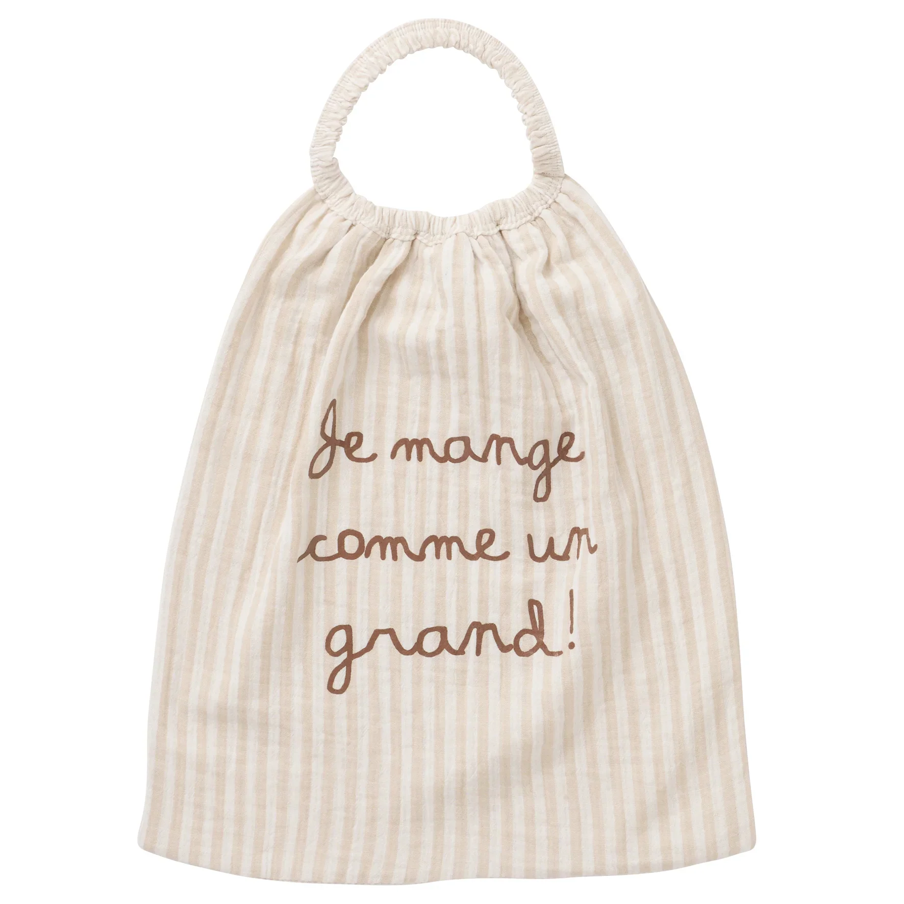 Une grande serviette doublée et élastiquée pour faire le beau à la cantine… ou même à la maison !