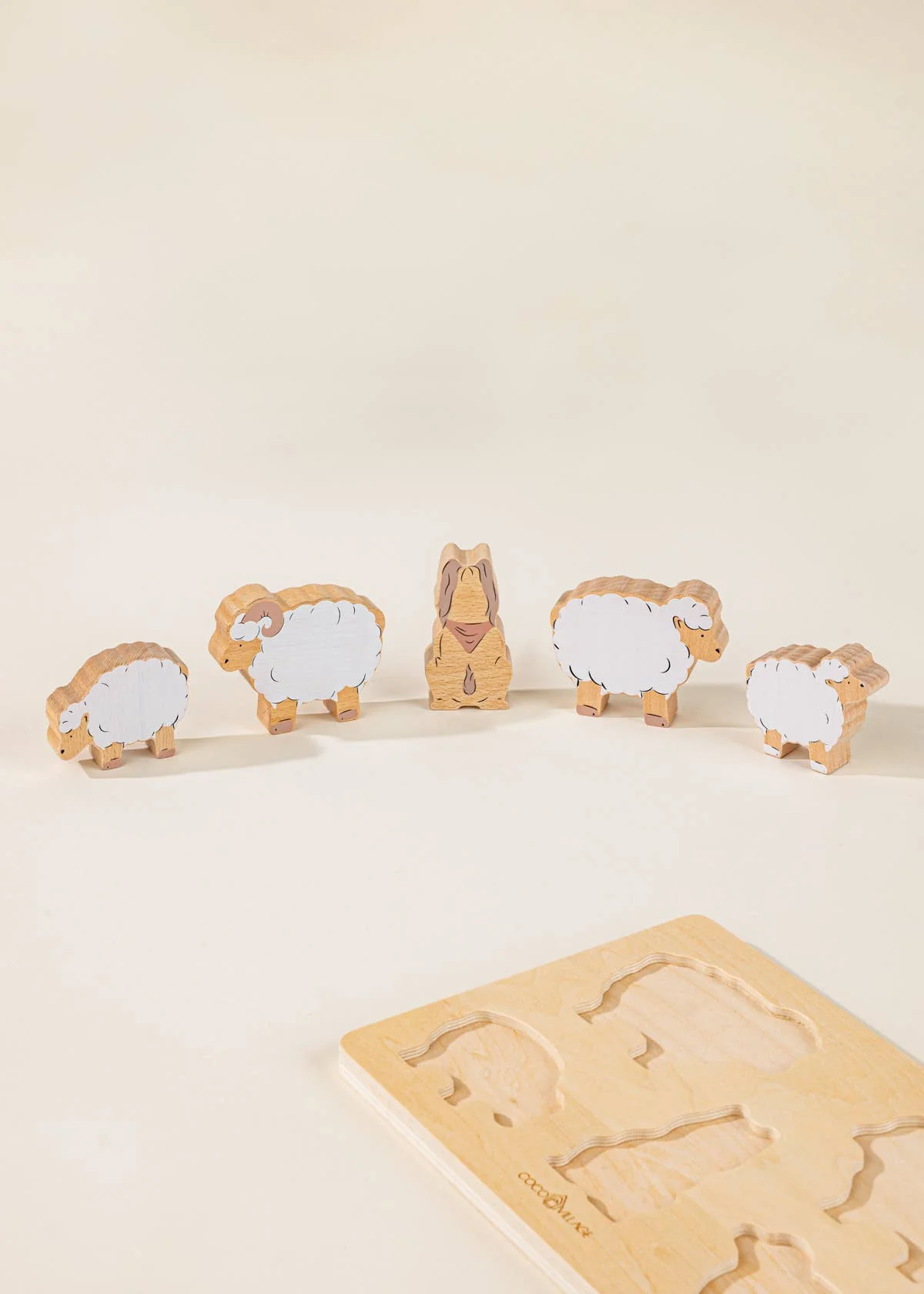 Ensemble de 5 animaux de berger sur assiette en bois – Jeu éducatif pour enfant