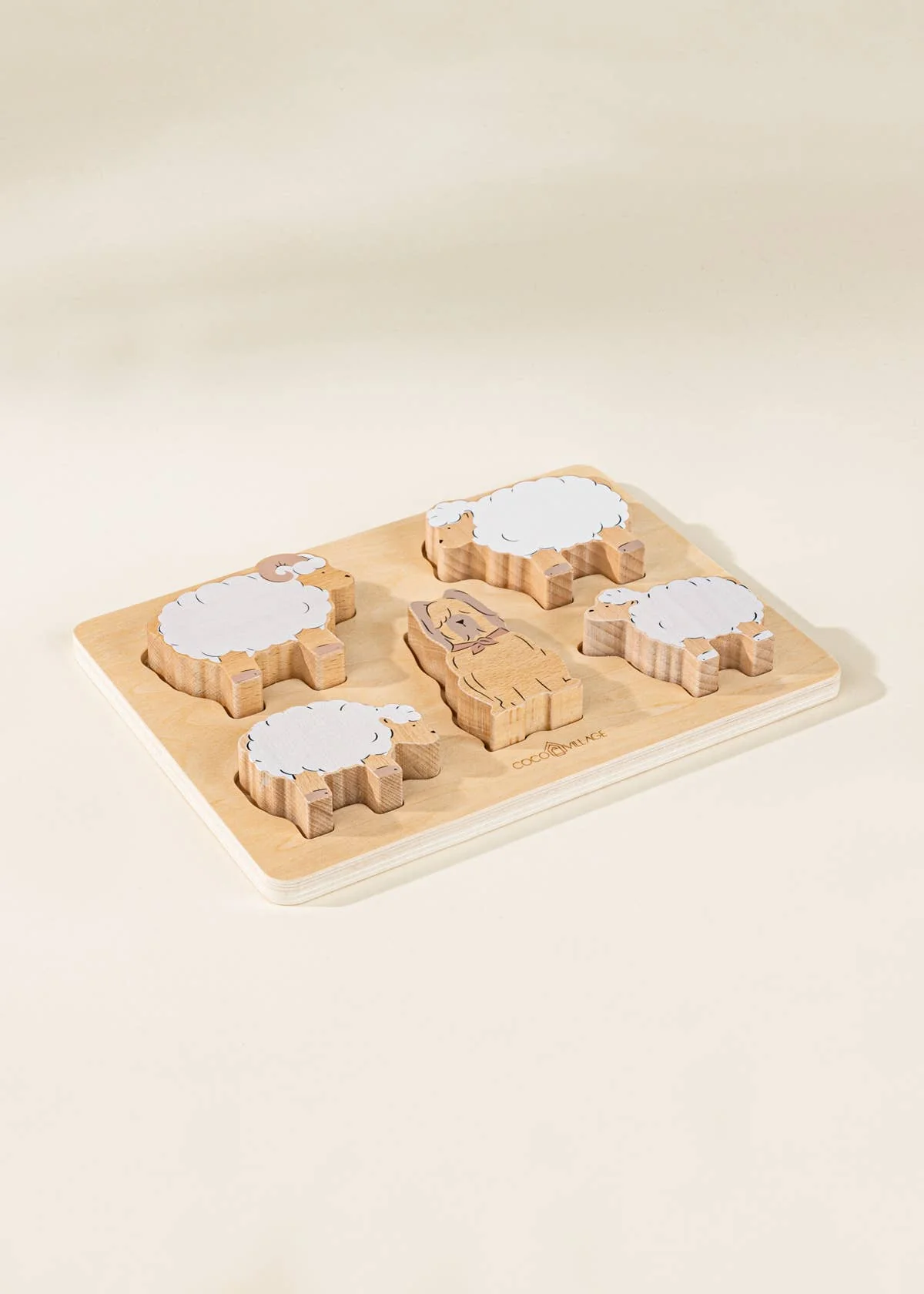 Set de 5 animaux de berger sur assiette en bois – Coco Village