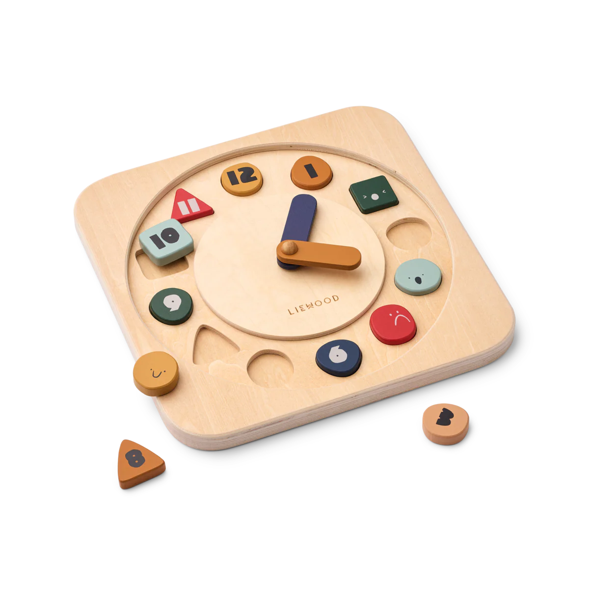 On adore ce jouet horloge en bois avec des blocs colorés pouvant être tournés et explorés des deux côtés, encourageant votre enfant à apprendre à lire l’heure et à exprimer ses émotions.