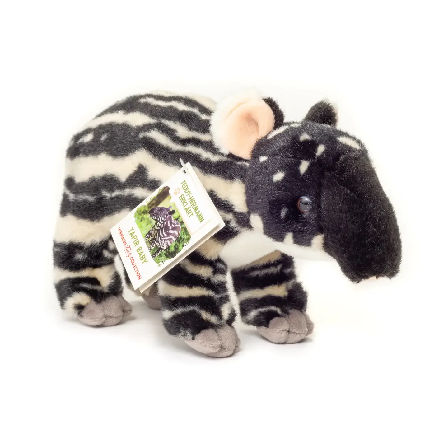 Le bébé Tapir de la collection Hermann Teddy transporte les enfants dans un univers lointain, à la découverte d’un animal aussi rare qu’attachant. Ce doudou fait partie de la gamme « Teddy Hermann Explained », conçue pour sensibiliser petits et grands à la faune exotique.