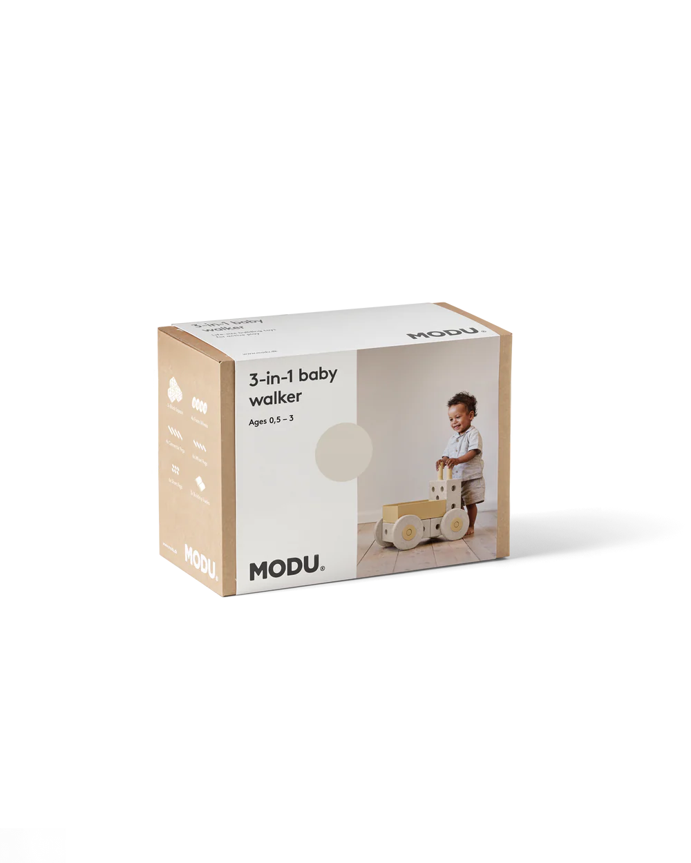 Le trotteur 3-en-1 de MODU soutient les premières compétences de marche et regorge de fonctionnalités amusantes et attrayantes. Lorsque votre enfant est prêt, il se transforme en brouette ou en escabeau pratique. De plus, la boîte spacieuse ajoute des capacités de stockage et de transport. Avec des roues sûres et stables et un design léger, le trotteur est facile à déplacer pour les tout-petits. Laissez l’exploration de votre enfant commencer !